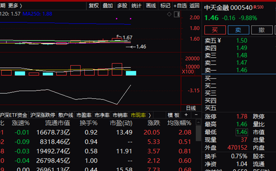 与此同时,中天金融发布公司股票交易可能被实施退市风险警示的提示性公告称,经中天金融财务部门测算,预计公司2022年度期末净资产为负值。根据《深圳证券交易所股票上市规则(2022年修订)》(以下简称《股票上市规则》)第9.3.1条第(二)项规定,公司股票交易可能在2022年年度报告披露后被深圳证券交易所实施退市风险警示。